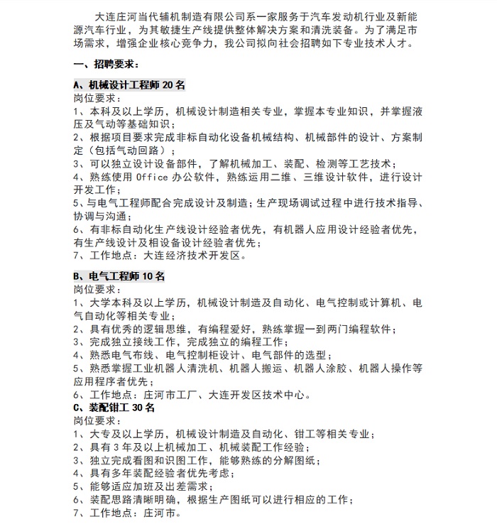 機械、電氣、機械裝配專業(yè)技術(shù)人才